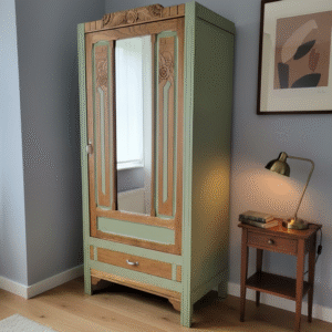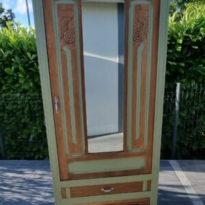 • Armoire bonnetière à miroir “Art Déco” en chêne de 1930 personnalisée