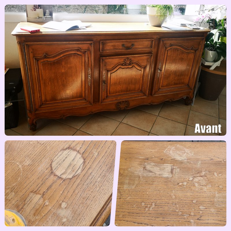 Ce buffet en chêne de style Louis XV a retrouvé toute son élégance grâce à un relooking soigné.