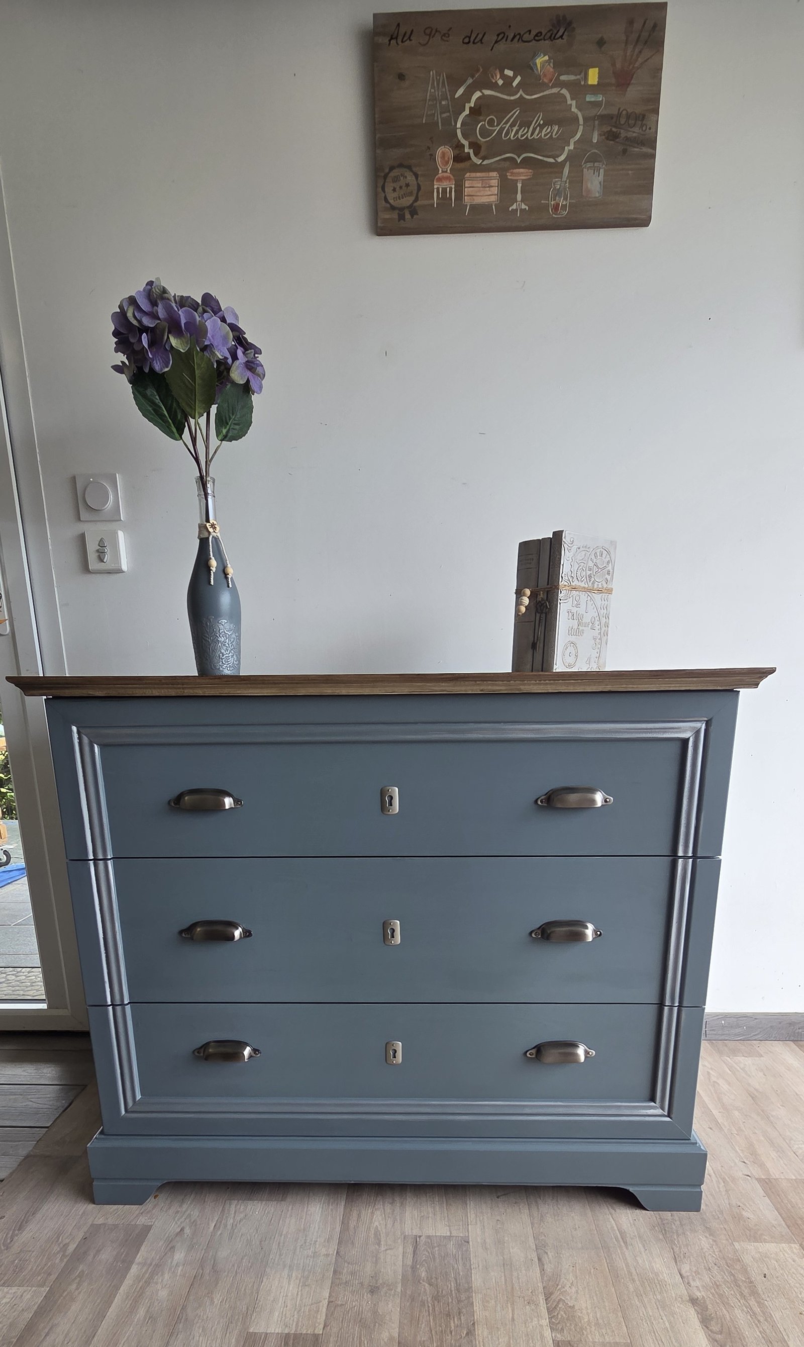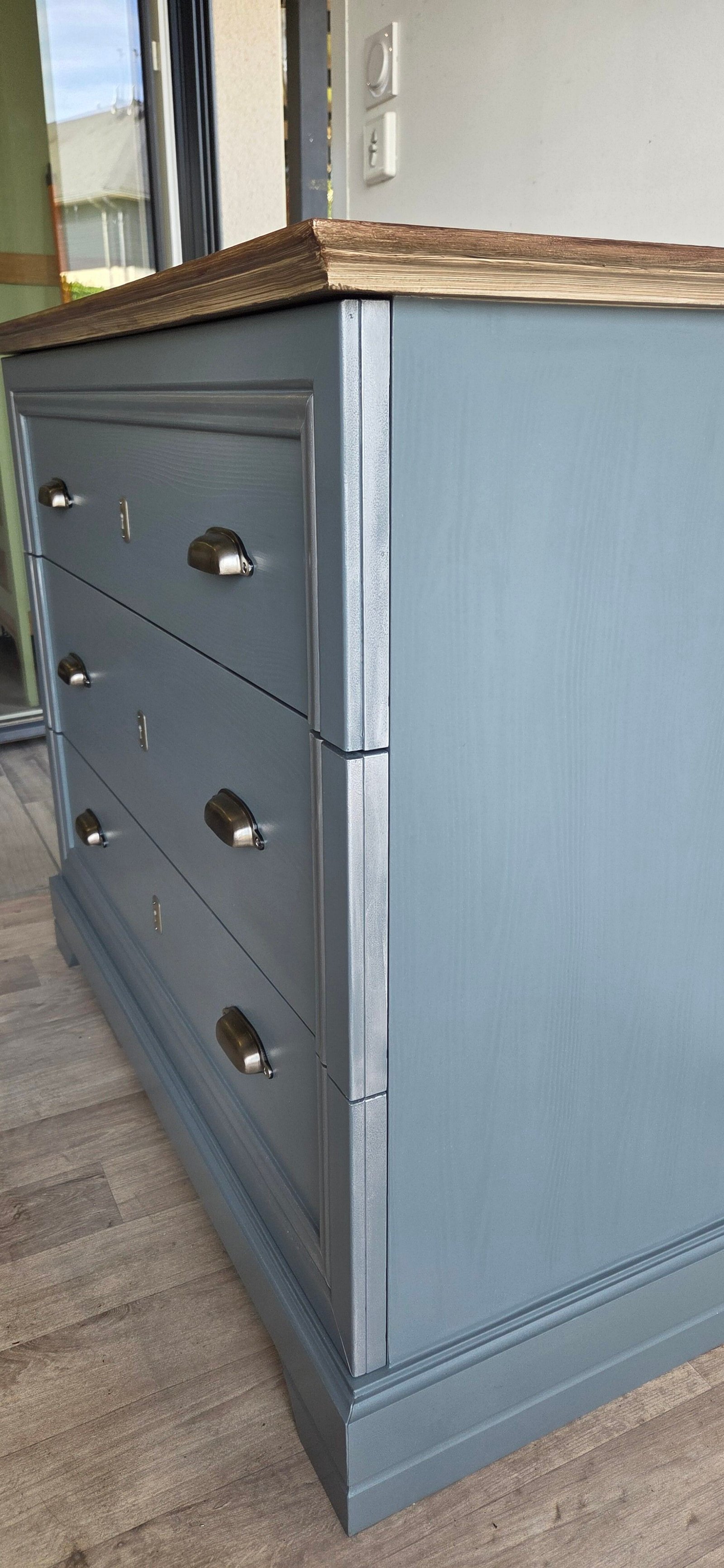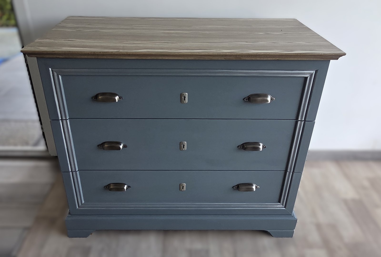 Commode style Louis Philippe en placage merisier « Bleu Acier »