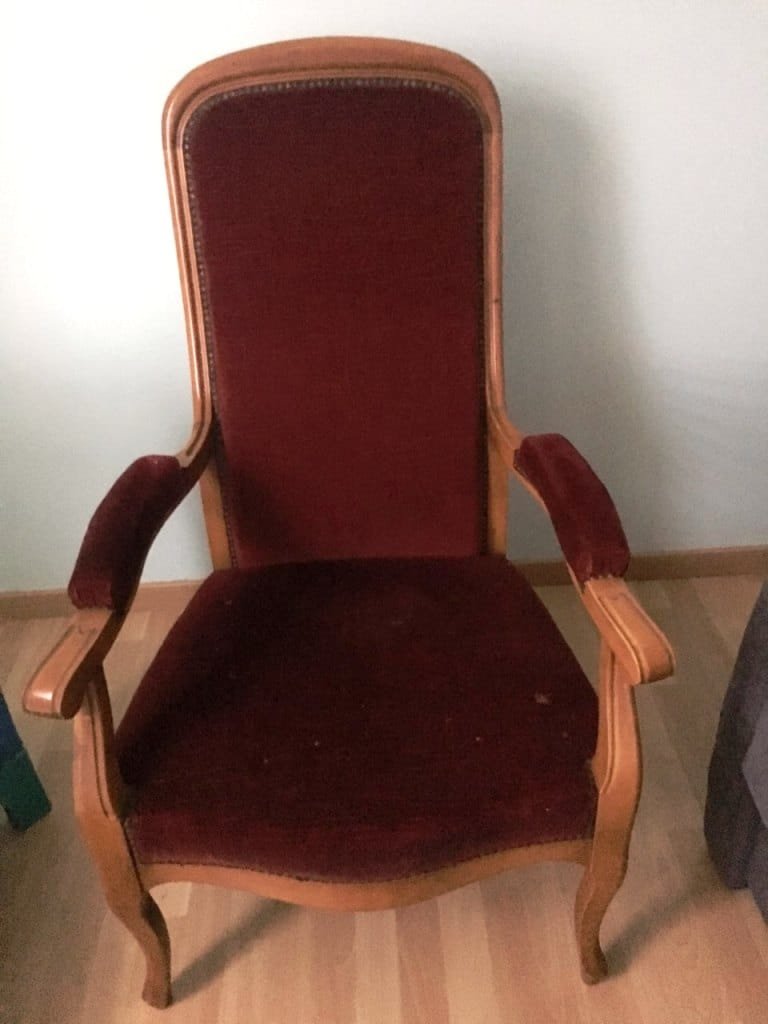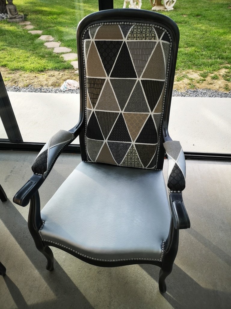 Nouveau souffle pour ces 3 anciens voltaires en merisier entièrement refaits, rafraîchis et modernisés.