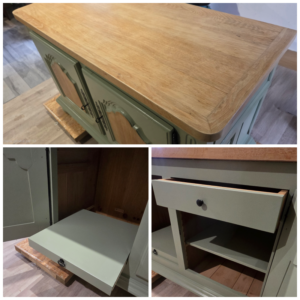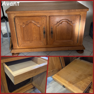 • Séjour en merisier massif style Louis Philippe “craie et bois naturel”